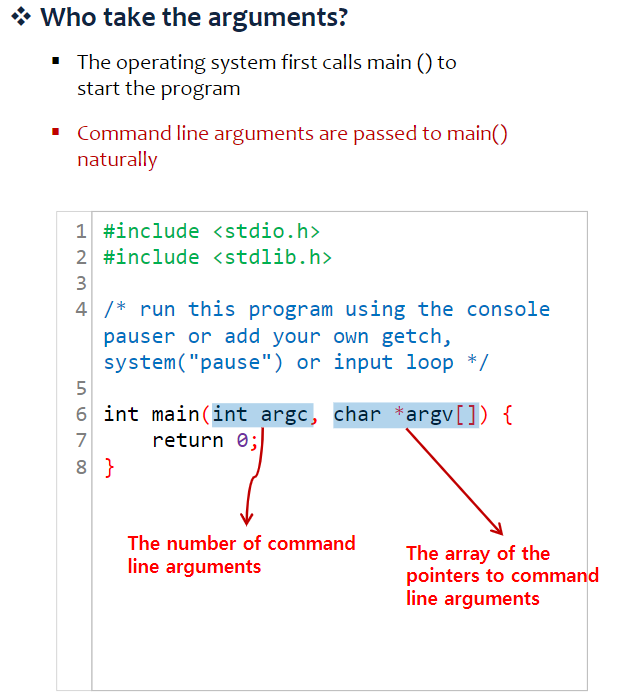 - commend line arguments의