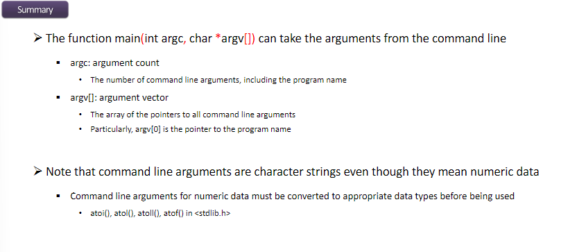 - All command line arguments are inputted as character strings